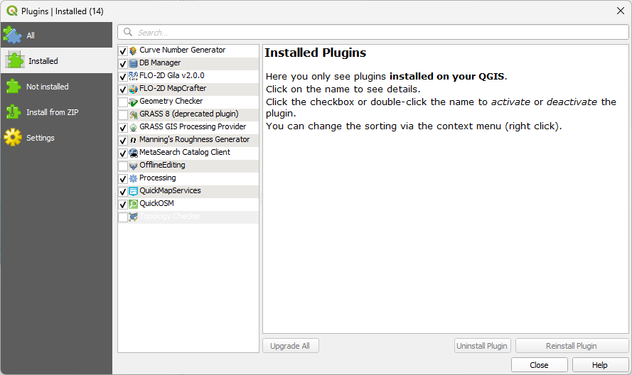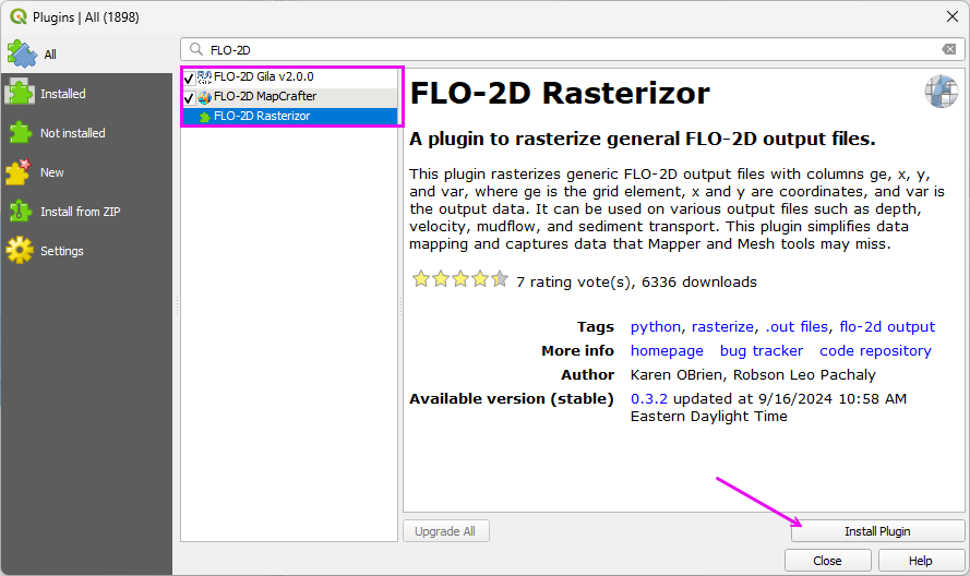 Switch to the All Plugins tab and filter the list with “FLO-2D”.