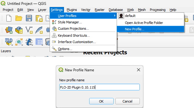 A dedicated QGIS User Profile is recommended when working with older versions of the FLO-2D Plugin.